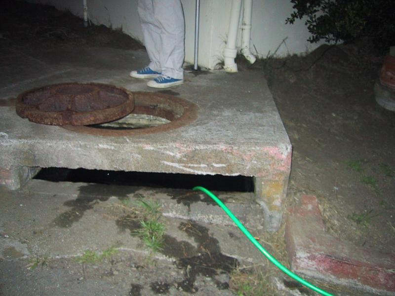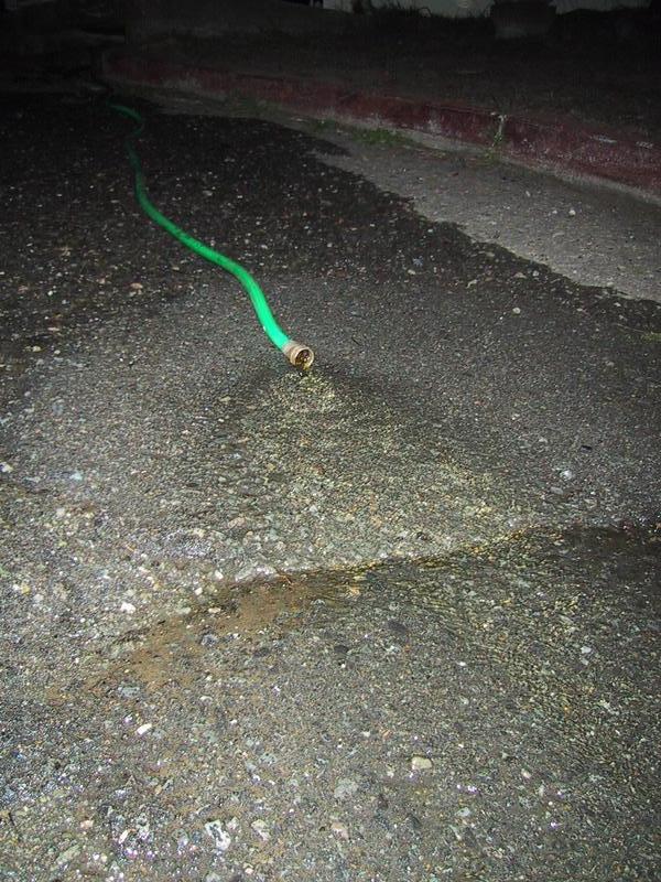 Everyone knows that Mosquitoes need standing water to breed. And lo and behold, by our little community in the Presidio, there's a holding basin for the storm sewer, a three foot deep pool of standing water. I hate mosquitoes, so Mike Warner and I embarked upon a public health/engineering project. Borrowing my roommate's water hose, I put the hose in the pool, held one end tight against my hand, then pulled it out downhill, creating a siphon that will drain the pool and remove the source of mosquitoes. Hazzah!